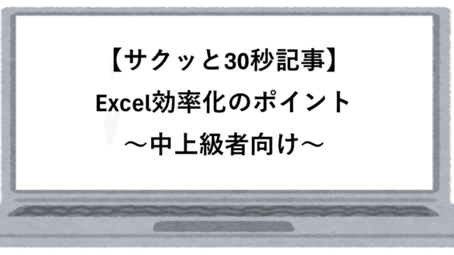 【サクッと30秒記事】Excel効率化のポイント 〜中上級者向け〜
